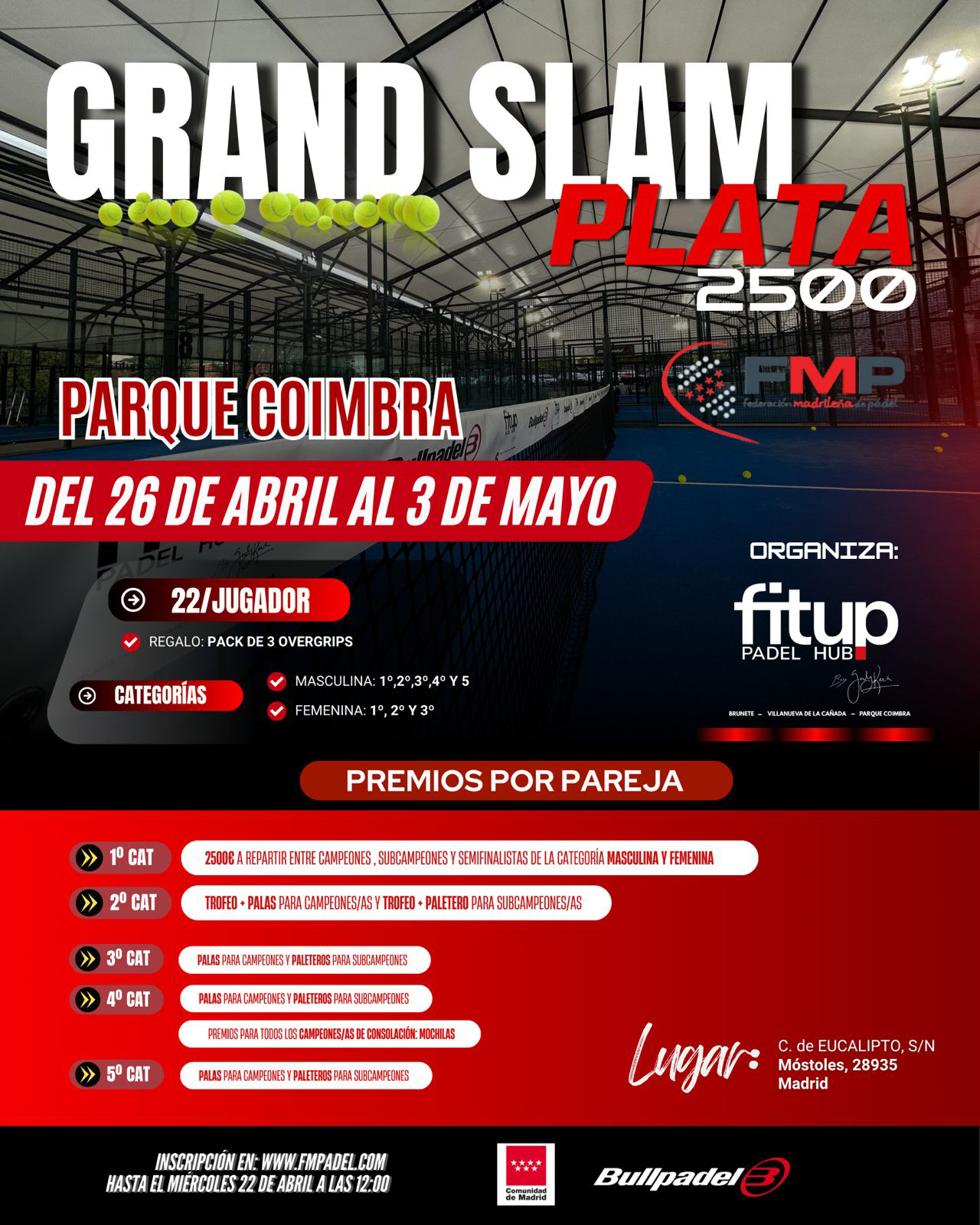 Ya está abierta la inscripción para el GRAND SLAM PLATA 2500 FIT UP PADEL HUB BY GABY RECA. Estos son los datos básicos del torneo: